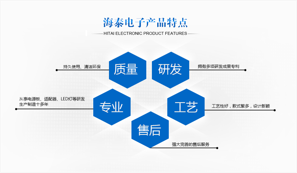 威海海泰電子有限公司成立于2003年(原威海雙豐通訊設(shè)備有限公司),是一家致力于開關(guān)電源、LED電源、電源適配器、手機充電器、醫(yī)療電源等自主研發(fā)、生產(chǎn)和銷售為一體的高新技術(shù)企業(yè)。公司秉承 “以顧客為中心”的宗旨,堅持“以人為本、質(zhì)量至上 、節(jié)能降耗、清潔環(huán)保、持續(xù)改進 ”的質(zhì)量和環(huán)境方針,科學(xué)高效的組織生產(chǎn),不斷的提高產(chǎn)品質(zhì)量。先后通過了ISO9001質(zhì)量管理體系認證、GJB9001C質(zhì)量管理體系和GJB3001C質(zhì)量管理體系和ISO14001環(huán)境管理體系認證。